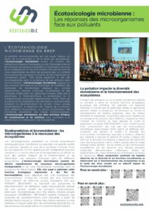 The members of the French-speaking steering committee of the EcotoxicoMic network have developed an informative brochure (in French) highlighting the importance of microbial ecotoxicology in addressing the challenges of pollution. This brochure also showcases the expertise of the international network, established in 2013, dedicated to advancing research and solutions in this field.