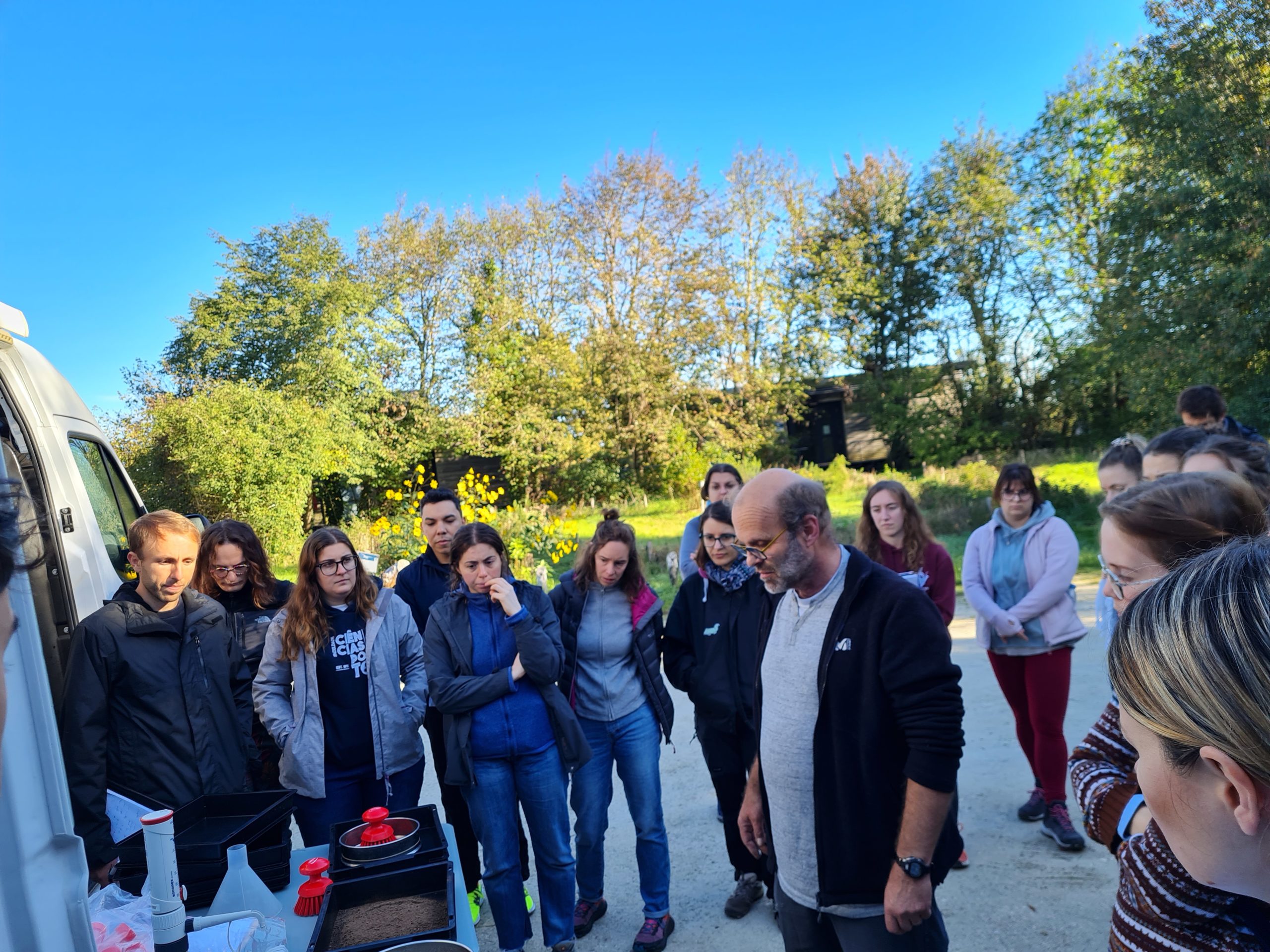 Throughout the week, participants took part in a rich and varied program combining theory, fieldwork, and lab-based experimentation. The training began with a hands-on field session in terrestrial and sedimentary environments, featuring the Biochem-Env mobile laboratory, led by Christian Mougin and Jasna Nikolic. This was followed by a drone piloting session with the GEPEA team, where participants learned how to use drones for sampling and in situ measurements in littoral environments, as well as the application of biosensors. In the lab, the group conducted analyses of collected samples, explored functional measurements in mesocosms, and gained experience with experimental approaches across different environmental matrices. The scientific content was enriched by a series of insightful keynote lectures, while more informal moments — such as birdwatching at the Teich nature reserve — provided opportunities to connect and unwind.